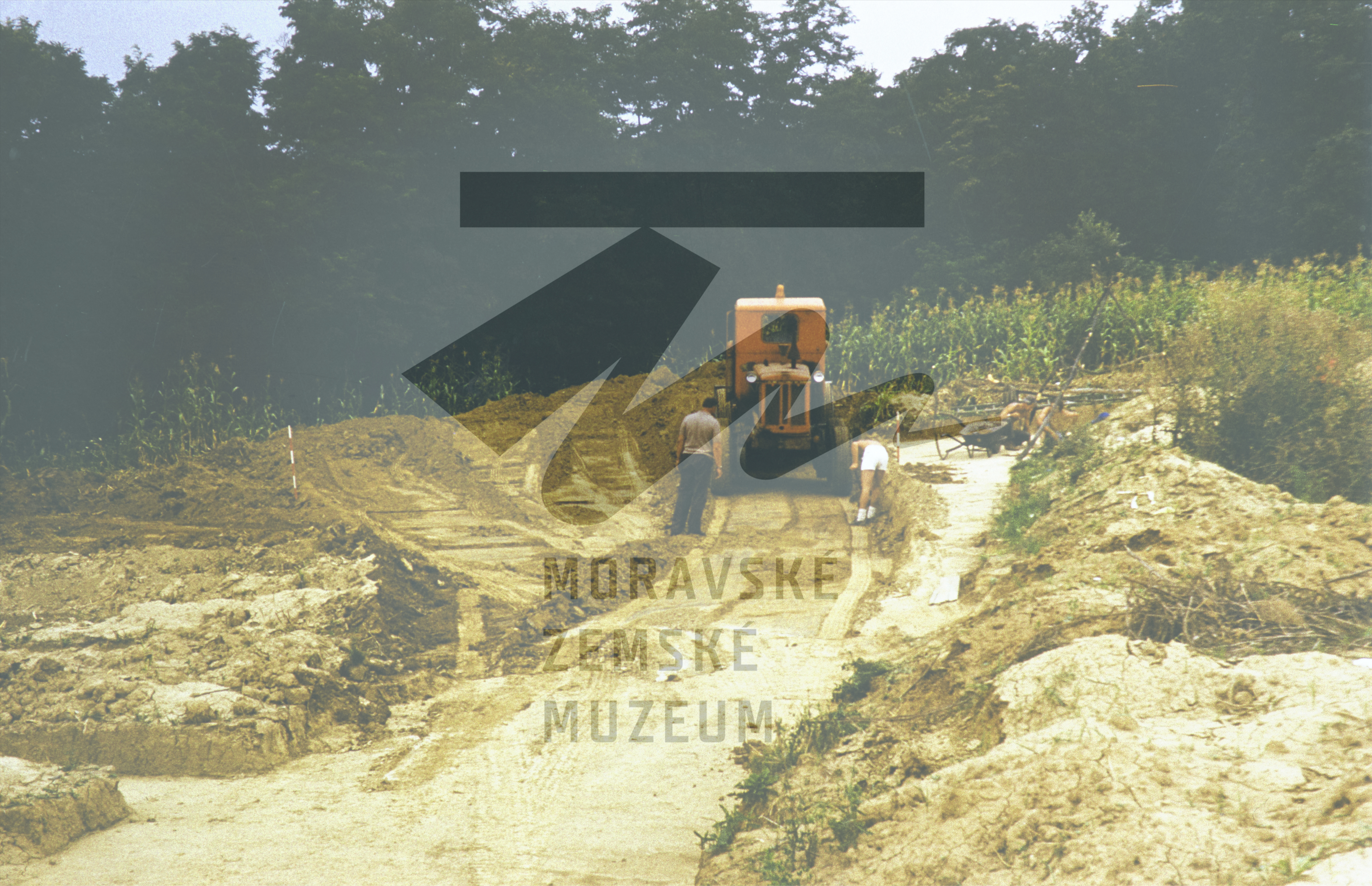 Zahájení výzkumu, 1982, skrývka holocenní půdy.