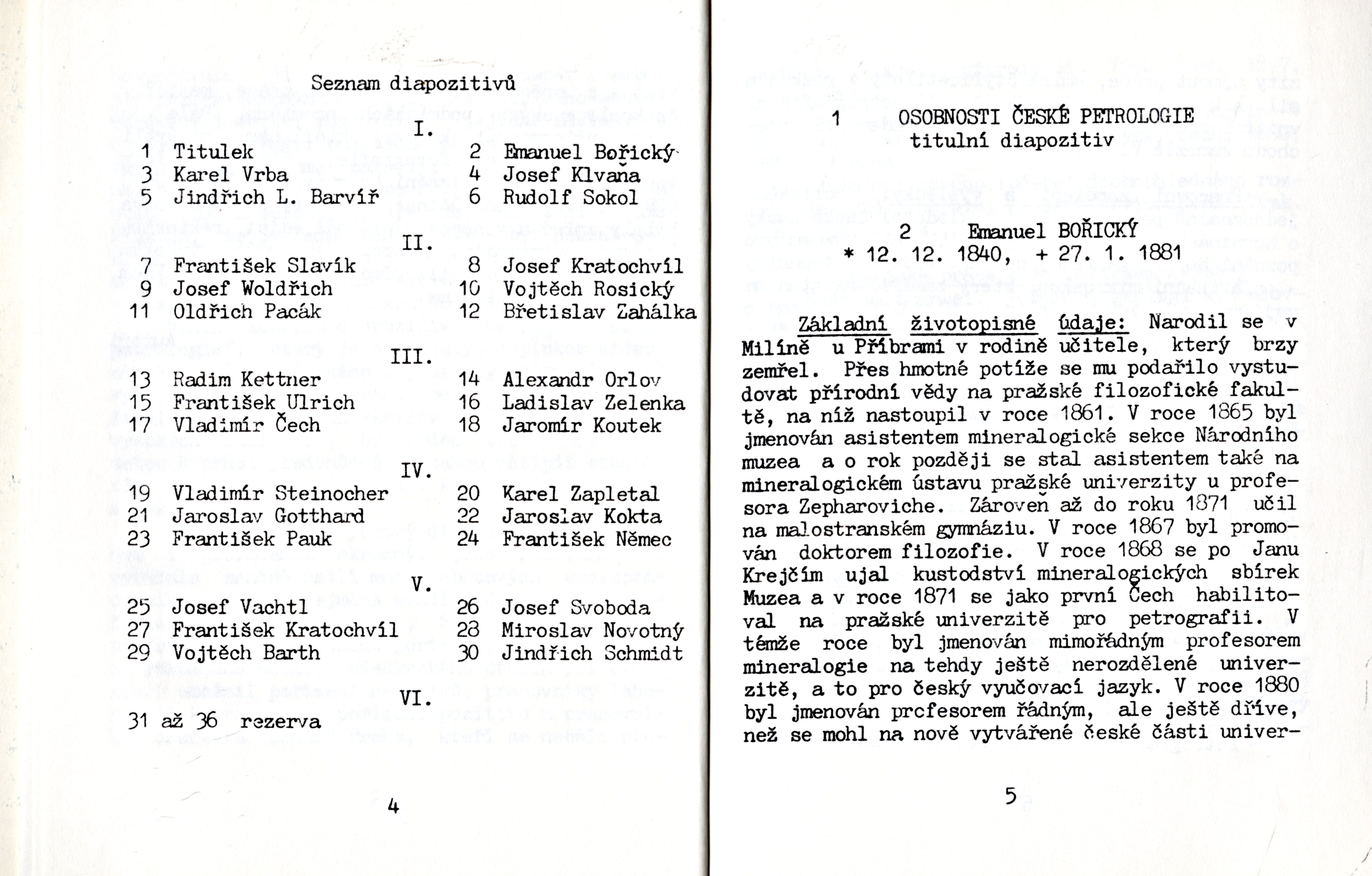 Textová část s životopisy jednotlivých osobností prezentovaných na jednotlivých diapozitivech.