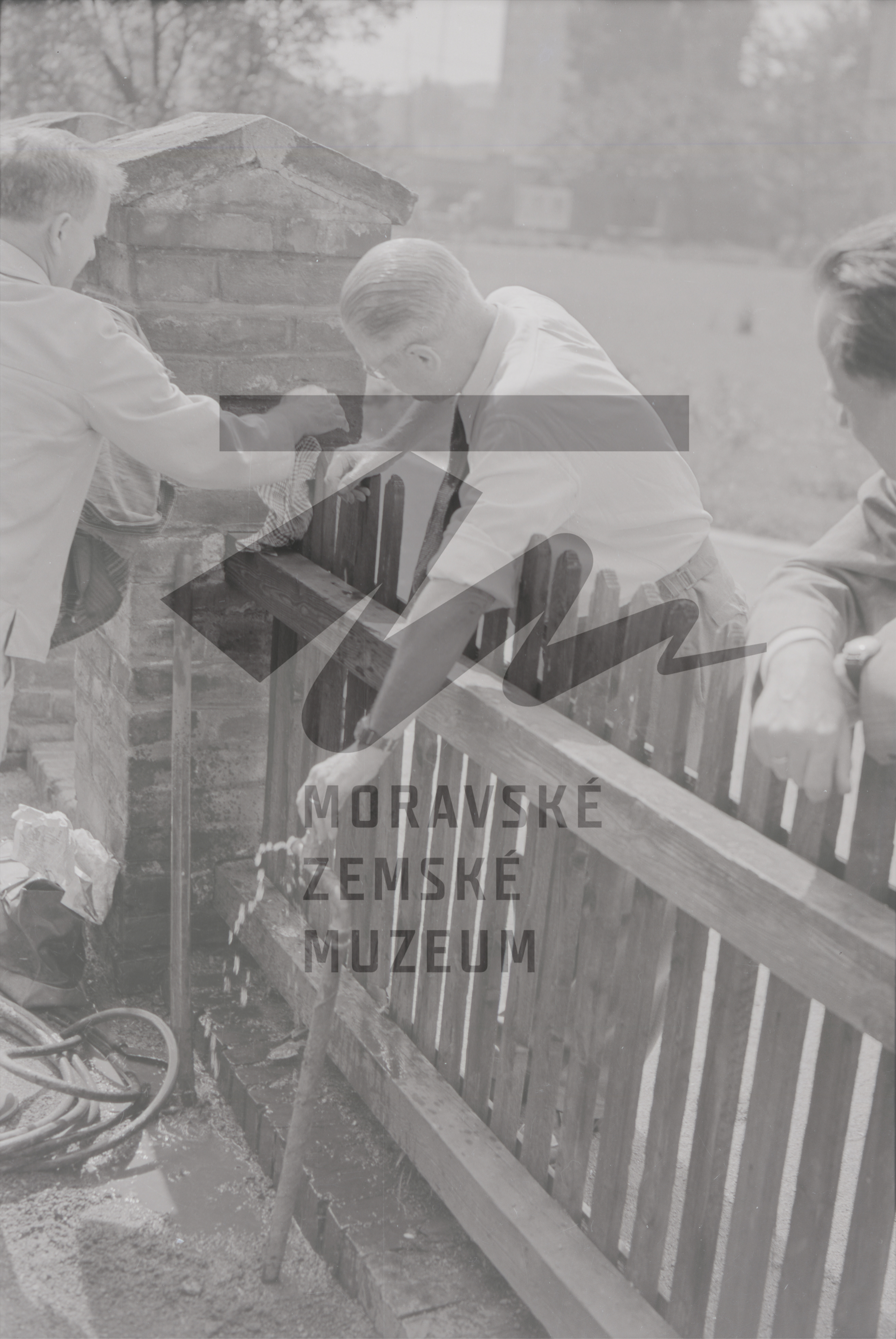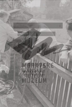 První vedoucí genetického oddělení Moravského muzea Jaroslav Kříženecký (1896-1964) v pokusné zahrádce před Mendelianem na Starém Brně, 1964.